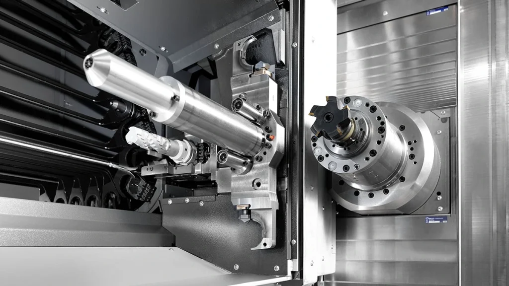 This allows the machine to rotate the workpiece during machining, achieving more complex geometries.